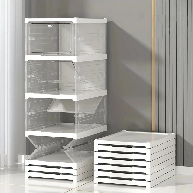 3. Folding: Our shoe box offers the convenience of foldability, allowing you to adjust it to 1-6 layers as desired.This feature ensures that it doesn't occupy excessive space when not in use.