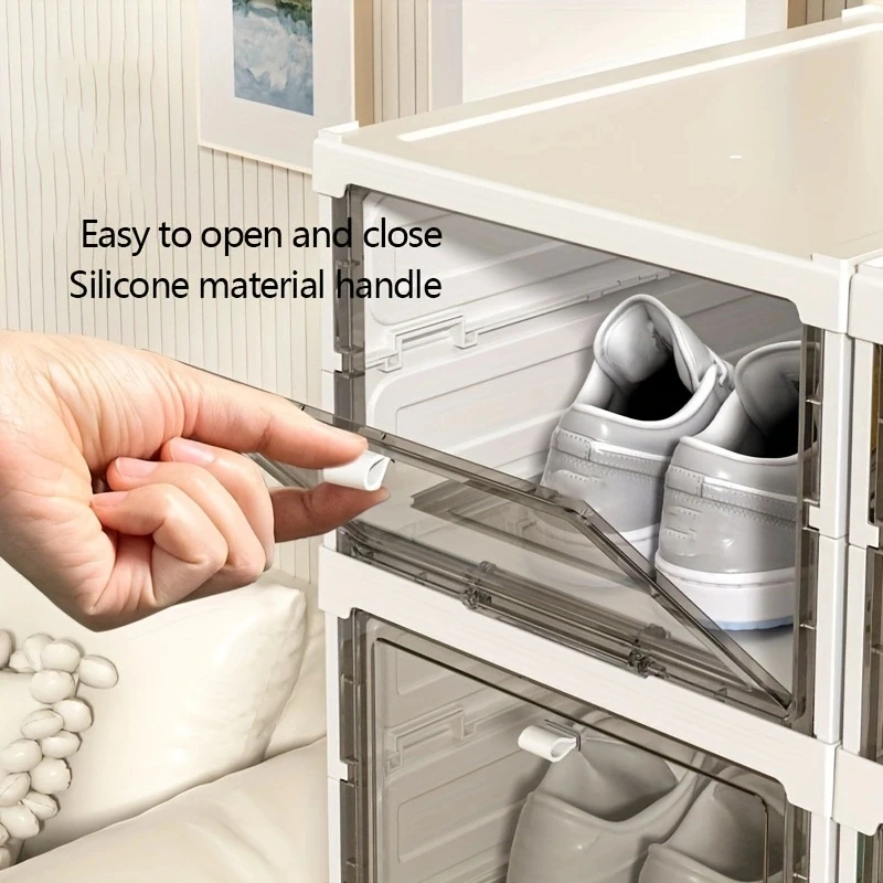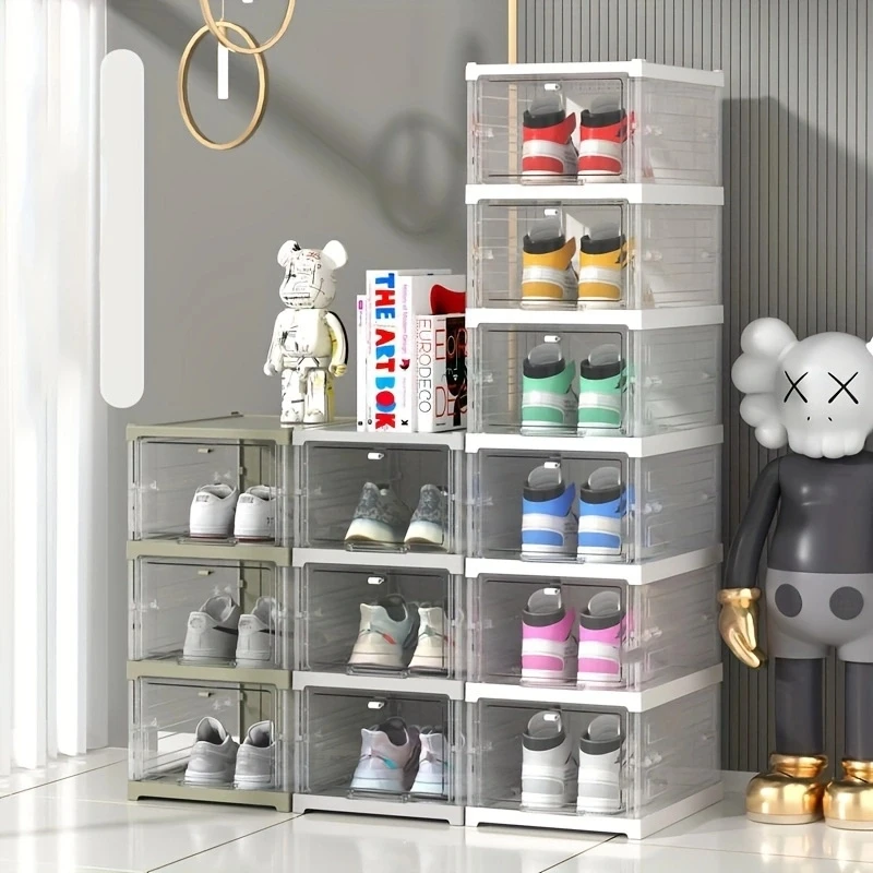 1pc Foldable Shoes Box Dustproof Thickening Footwear Organizer Cabinet Transparent Stackable Installation Free Closetshoe Rack