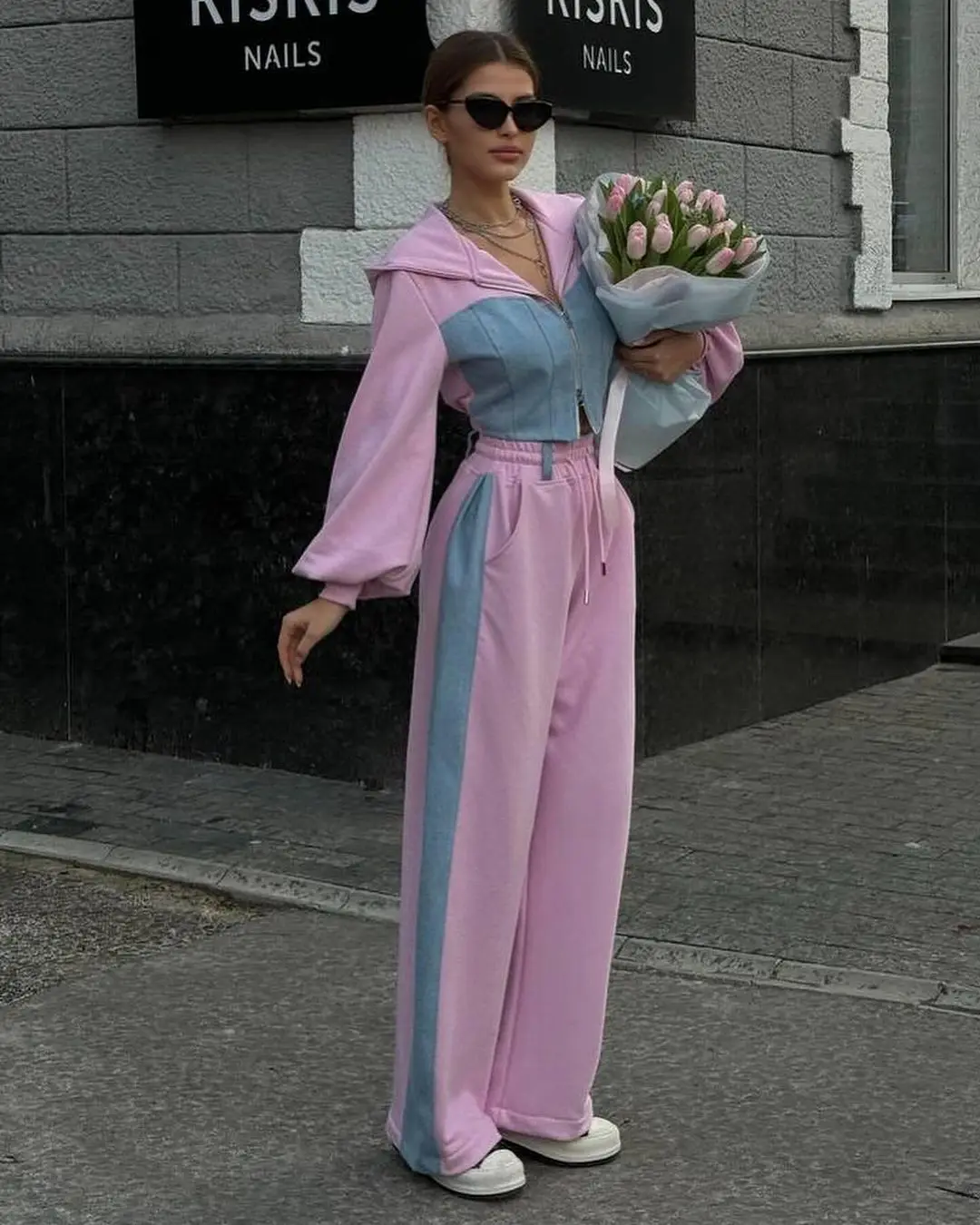 2024 Autumn and Winter New Casual Contrasting Color Suit Long Sleeve Hoodie Sports 2 Sets of Pants Suit Women's Clothing